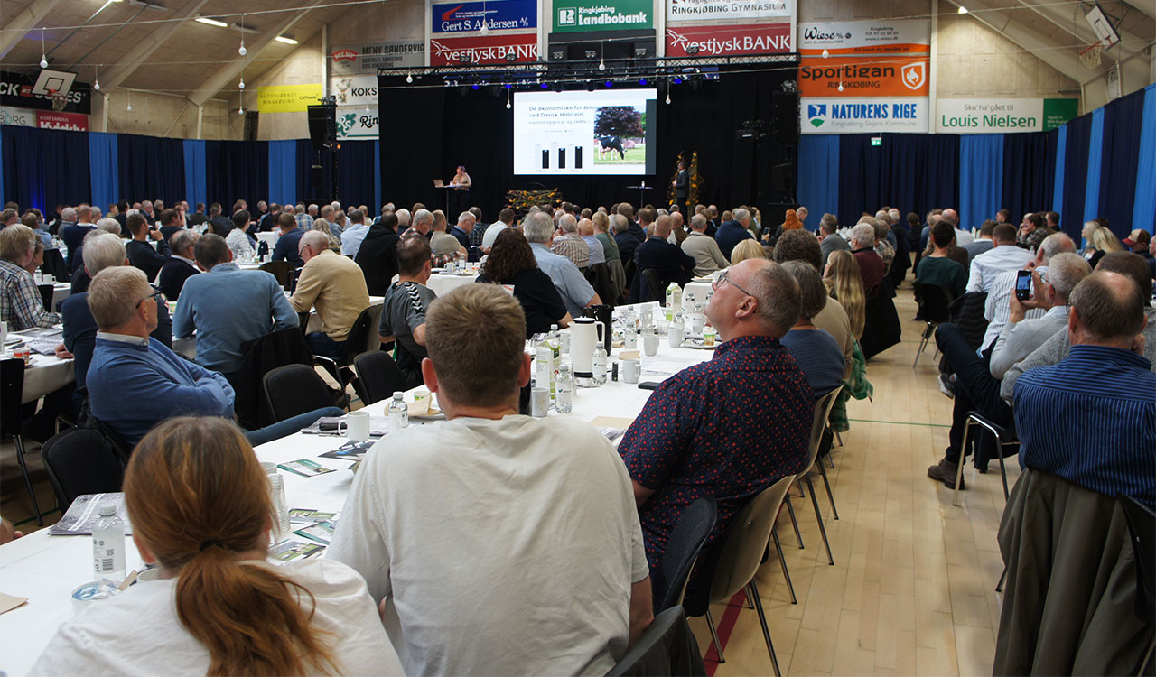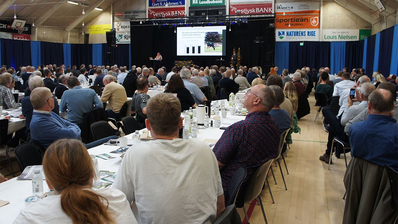 Deltagere i Dansk Holsteins årsmøde i ROFI-Centret lytter til beretningerne. | ![]() |