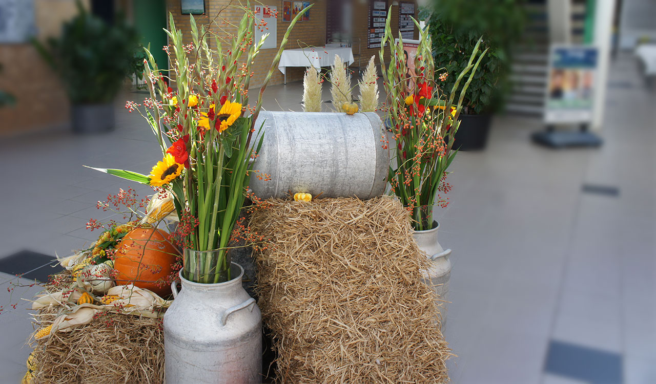 Denne flotte dekoration i ROFI-Centrets forhal signalerede, at der var besøg af kvægfolk i centret. |