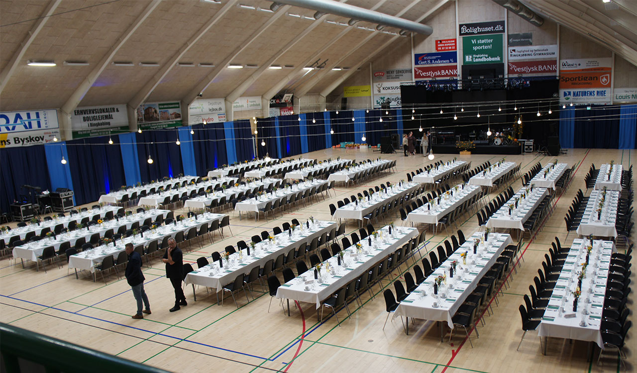 ROFIs veteranudvalg har prøvet det mange gange før – at dække bord til store arrangementer i ROFI-Centret. Det ses tydeligt på de snorlige rækker i borddækningen til aftenfesten. | ![]() |