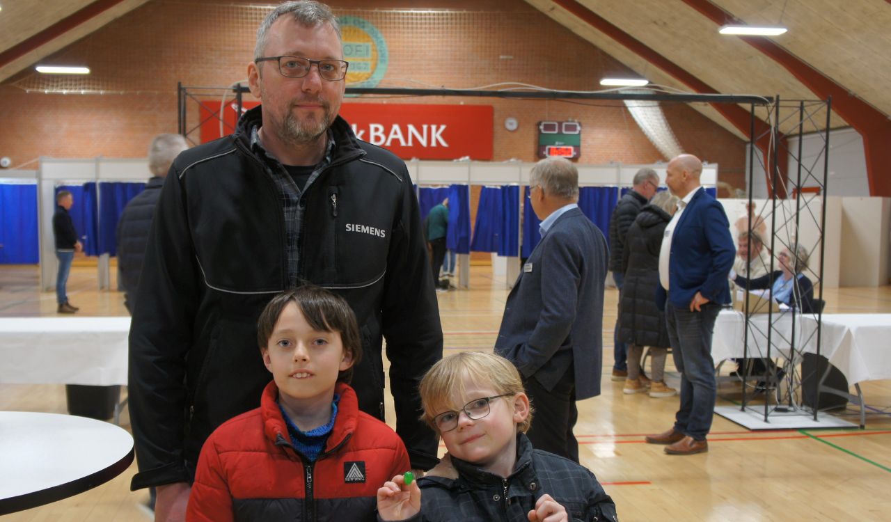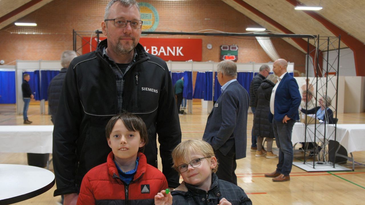 Esben Nørby havde taget sønnerne Peter og Martin med til afstemningen i ROFI-Centret. |