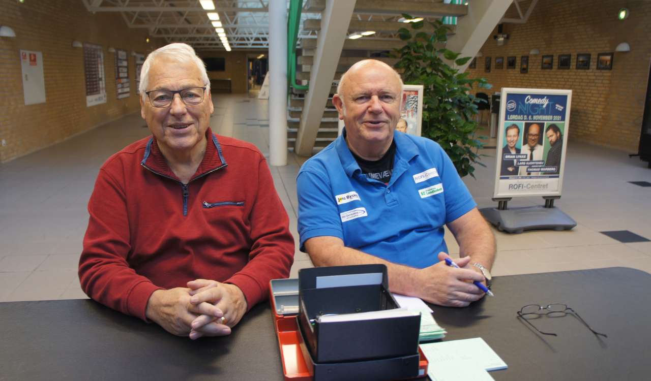 Indtil for et års tid siden var Tage stadig med til at stå for ROFIs velbesøgte aktivitet ”Aktive Senior 60+” i ROFI-Centret. Her ses han sammen med en anden af tovholderne i den aktivitet, Jørn Møller Sørensen. |
